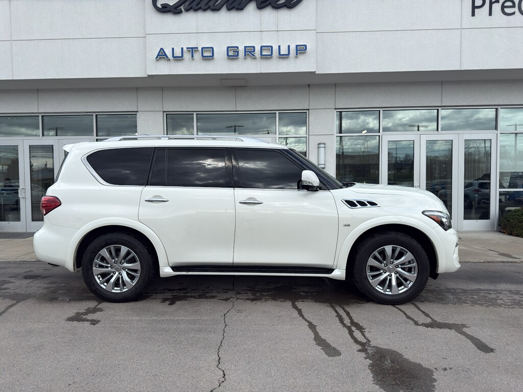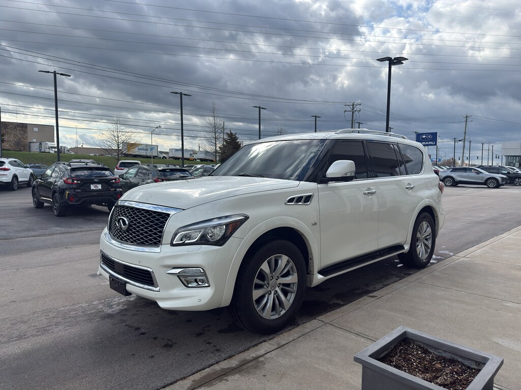 Bluetooth technology is built into it, keeping your hands on the steering wheel and your focus on the road. The installed navigation system will keep you on the right path. Never get into a cold vehicle again with the remote start feature on this unit. Keep your hands warm all winter with a heated steering wheel in this INFINITI QX80 . See what's behind you with the back up camera on this 1/2 ton suv. This vehicle has a premium sound system installed. This 2016 INFINITI QX80 has automated speed control that adjusts to maintain a safe following distance, enhancing highway driving convenience. The satellite radio system in this 1/2 ton suv gives you access to hundreds of nation-wide radio stations with a clear digital signal. The leather seats in the vehicle are a must for buyers looking for comfort, durability, and style. It features a high end BOSE stereo system.
