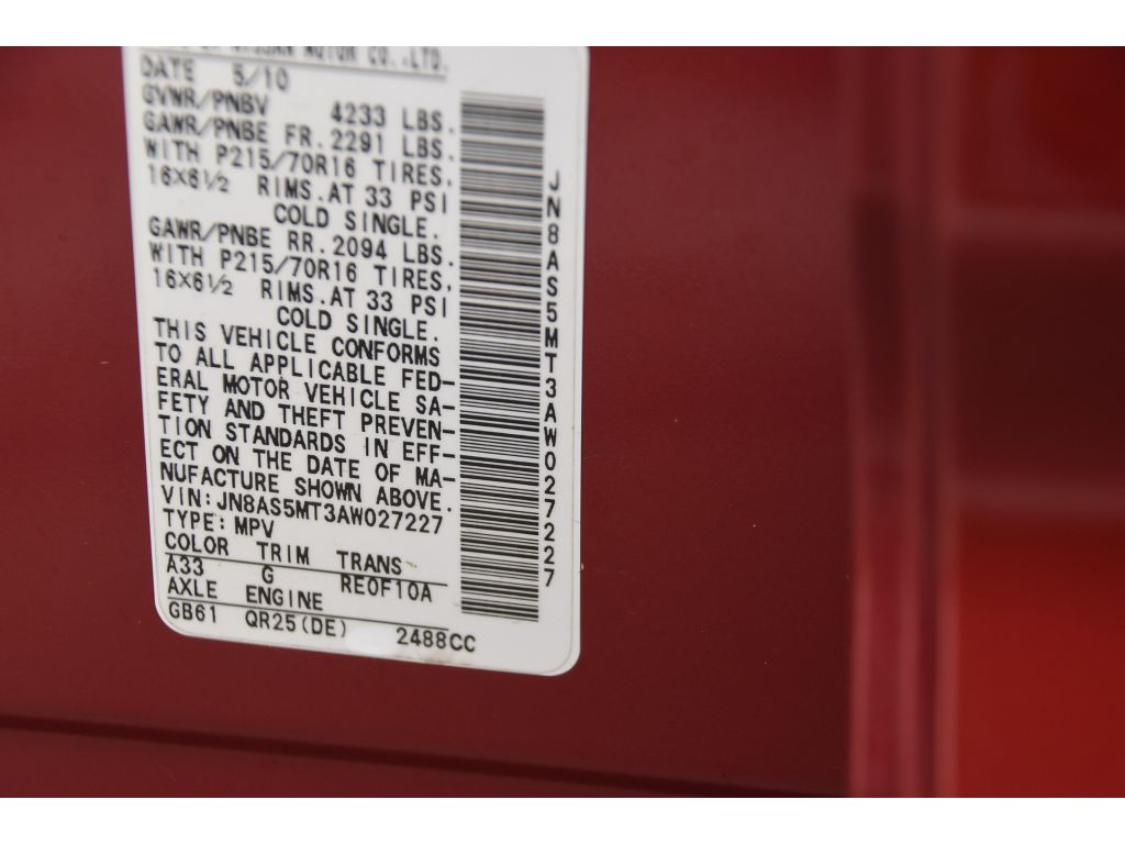 See what's behind you with the back up camera on this small suv. Set the temperature exactly where you are most comfortable in it. The fan speed and temperature will automatically adjust to maintain your preferred zone climate. Front wheel drive on this vehicle gives you better traction and better fuel economy. The vehicle gleams with a flashy red exterior. This small suv has a 4 Cyl, 2.5L high output engine. The vehicle is accented with a stylish rear spoiler. This model is accented with premium quality alloy wheels. The Electronic Stability Control will keep you on your intended path. This 2010 Nissan Rogue has an automatic transmission. This Nissan Rogue features cruise control for long trips. Anti-lock brakes are standard on it. Enjoy the tried and true gasoline engine in the Nissan Rogue. The perfect balance of space and size. the vehicle cruises through the city with ease.